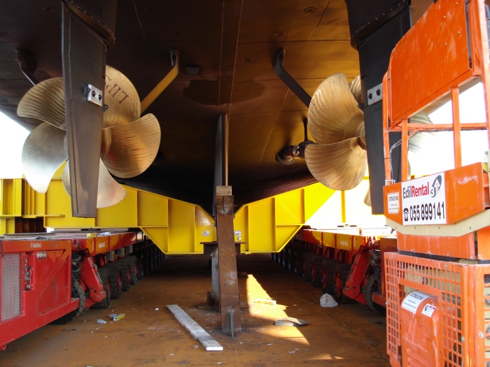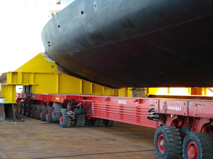 Peso asciutto scarico ~ 620 t. - Peso movimentato (compreso traverse) ~ 720 t.