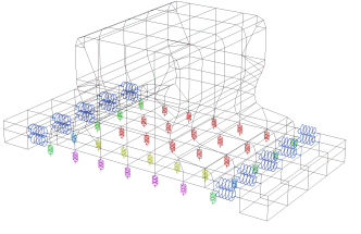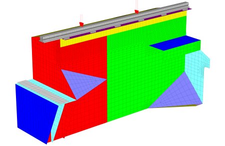 I fissaggi dei binari del tipo regolabile BHP da 86 kg sono stati modellati con elementi brick solidi a 8 nodi per determinare correttamente il modo di trasferimento del carico dalle ruote alla trave. Il fissaggio Fabreeka SA47 ed il pattino di gomma vulcanizzata sono stati modellati con elementi a molla elicoidale (coil spring). Anche le zone di contatto sono state modellate mediante elementi spring.